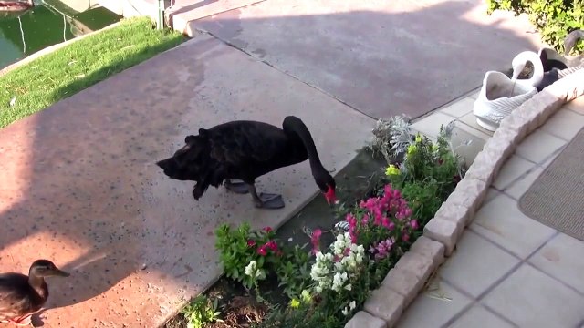Мой друг белый лебедь по имени Голубь привел семью, знакомиться. Тем временем мейн-кун кошка Пуша охотит