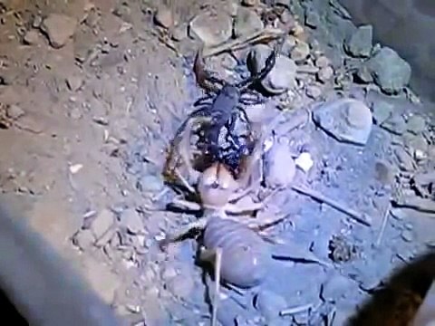 Гигантский пустынный скорпион (Hadrurus arizonensis), живущий в пустынях Северной Америки, встретил своего земля�